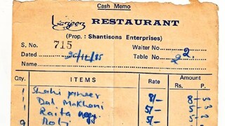 മുമ്പ് 1985ലെ ഒരു ബില്ലും ഇതുപോലെ വൈറലായിരുന്നു. ഒരു പ്ലേറ്റ് ഷാഹി പനീറിന് എട്ട് രൂപ, ധാല് മഖാനിയ്ക്കും റെയ്ത്തയ്ക്കും അഞ്ച് രൂപ വീതം എന്നിങ്ങനെയാണ് അതില് രേഖപ്പെടുത്തിയിരുന്നത്.