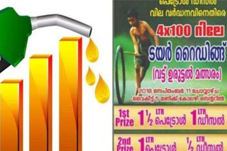 ഇന്ധവില വര്ധനവിനെതിരെ ടയര് ഉരുട്ടല് മത്സരം; വിജയികള്ക്ക് ഒന്നര ലിറ്റര് പെട്രോള് സമ്മാനം