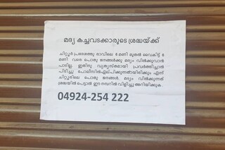 രാവിലെ 6 മണി മുതൽ വൈകീട് 6 വരെ പൊതുജനങ്ങൾക്ക് മദ്യം വിറ്റാൽ പിടിച്ചു പൊലീസിലേൽപ്പിയ്ക്കും എന്നാണ് പോസ്റ്റർ.