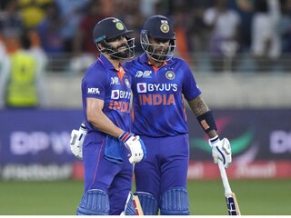 ക്രീസിലെത്തിയപ്പോളേ അടി തുടങ്ങിയ സൂര്യകുമാറാണ് ഇന്ത്യന് ഇന്നിംഗ്സിന് ഗതിവേഗം നല്കിയത്. നേരിട്ട ആദ്യ രണ്ട് പന്തും ബൗണ്ടറി കടത്തി സൂര്യ വെടിക്കെട്ട് തുടങ്ങിയപ്പോള് കോലി നല്ല പിന്തുണയാണ് നൽകിയത്. ഇടക്കിടെ ബൗണ്ടറികള് നേടി കോലി 40 പന്തില് അര്ധസെഞ്ചുറിയിലെത്തി. ആയുഷ് ശുക്ല എറിഞ്ഞ പതിനെട്ടാം ഓവറില് 17 റണ്സടിച്ച ഇന്ത്യ എഹ്സാന് ഖാന് എറിഞ്ഞ പത്തൊമ്പതാം ഓവറില് 13 റണ്സടിച്ചു. ഹാരൂണ് അര്ഷാദ് എറിഞ്ഞ അവസാന ഓവറില് നാലു സിക്സ് അടക്കം 26 റണ്സടിച്ച ഇന്ത്യ അവസാന മൂന്നോവറില് 56 റണ്സടിച്ചാണ് കൂറ്റന് സ്കോര് ഉറപ്പാക്കിയത്.