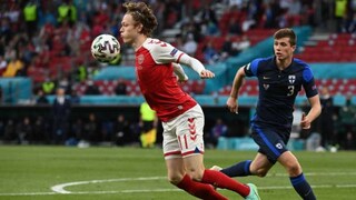 നേരത്തെ കളിയിലെ ദൗർഭാഗ്യകരമായ സംഭവം നടന്നത് ആദ്യ പകുതി അവസാനിക്കാൻ നിമിഷങ്ങൾ മാത്രം ബാക്കി നിൽക്കെയായിരുന്നു. ഫിന്ലന്ഡിന്റെ പകുതിയിൽ വെച്ച് പെട്ടെന്ന് കുഴഞ്ഞു വീഴുകയായിരുന്നു ഡെന്മാർക്ക് സൂപ്പർ താരമായ എറിക്സൺ. താരം കുഴഞ്ഞു വീണയുടനെ റഫറി ആന്തണി ടെയ്ലർ കളി നിർത്തിവെച്ച് ഉടൻ തന്നെ മെഡിക്കൽ സംഘത്തെ കളത്തിൽ എത്തിച്ചു. കുഴഞ്ഞു വീണ് ബോധം മറഞ്ഞ താരത്തിന് കളത്തിൽ വെച്ച് പ്രഥമ ശുശ്രൂഷകൾ നൽകിയതിന് ശേഷം ആശുപത്രിയിലേക്ക് കൊണ്ടുപോയി. ഇതിനിടെ കളി ഒരറിയിപ്പ് ഉണ്ടാകുന്നത് വരെ നിർത്തിവെക്കാനും തീരുമാനമായി. എറിക്സൺ അപകടനില തരണം ചെയ്തു എന്ന വാർത്ത വന്നതിനു പിന്നാലെയാണ് കളി തുടങ്ങാൻ തീരുമാനമായത്.
