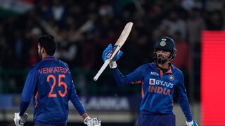 ഇതിനിടെ അനാവശ്യ ഷോട്ടിന് ശ്രമിച്ച് വെങ്കടേഷ് അയ്യര് പുറത്തായി. കുമാരയുടെ പന്തില് സിക്സ് നേടാനുള്ള അയ്യരുടെ ശ്രമം പകരക്കാരനായ ജയവിക്രമ കൈയ്യിലൊതുക്കി. ഇതോടെ ഇന്ത്യ 103 ന് നാല് എന്ന സ്കോറിലേക്ക് വീണു. വെങ്കടേഷിന് പകരമായി രവീന്ദ്ര ജഡേജയാണ് ക്രീസിലെത്തിയത്. ശ്രദ്ധയോടെ കളിച്ച ജഡേജ ശ്രേയസിന് മികച്ച പിന്തുണ നല്കി. വൈകാതെ ഇന്ത്യ 16.5 ഓവറില് വിജയത്തിലെത്തി. ശ്രേയസ് 73 റണ്സെടുത്തും ജഡേജ 15 പന്തുകളില് നിന്ന് 22 റണ്സ് നേടിയും പുറത്താവാതെ നിന്നു.