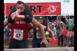 ഭാര്യയെ ചുമന്ന് ഫിനിഷിംഗ് പോയിന്റിൽ ഒന്നാമത് എത്തിയ ഭർത്താവിന് ലഭിച്ച സമ്മാനമാണ് രസകരം. ഭാര്യയുടെ ഭാരത്തിന്റെ അത്രയും ബിയറും ഭാരത്തിന്റെ അഞ്ചുമടങ്ങ് പണവും.മെയ്ൻ മുതൽ കാലിഫോർണിയവരെയുള്ള 30 ടീമുകളാണ് ചാമ്പ്യൻഷിപ്പിൽ മത്സരിച്ചത്.