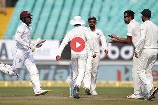 അതില് ആദ്യ വിക്കറ്റ് ജഡേജ സ്വന്തമാക്കിയത് റണ്ണൗട്ടിലൂടെയായിരുന്നു. വിന്ഡീസ് ബാറ്റ്സ്മാന്മാരുടെ ആശയക്കുഴപ്പത്തില് രൂപപ്പെട്ട വിക്കറ്റ് സാഹസത്തിലൂടെയായിരുന്നു ജഡേജ നേടിയത്. രണ്ടു ബാറ്റ്സ്മാന്മാരും ബാറ്റിങ്ങ് സ്ട്രൈക്കിലെത്തിയപ്പോള് പന്ത് കിട്ടിയ ജഡേജ സാവധാനം നോണ് സ്ട്രൈക്കിങ്ങ് എന്ഡിലേക്ക് നടക്കുകയായിരുന്നു. ഉടന് വിന്ഡീസ് താരം ഷിമ്രോണ് നോണ് സ്ട്രൈക്ക് എന്ഡിലേക്ക് ഓടിയടുക്കുകയും ചെയ്തു.