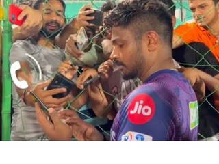 സെൽഫിയെടുക്കുന്നതിനിടെ കോൾ വരുമ്പോൾ ‘കോൾ ആ രഹാഹെ’ എന്ന് സഞ്ജു പറയുന്നത് വിഡിയോയിൽ കേൾക്കാം. ഇതിനു പിന്നാലെ താരം കോൾ അറ്റൻഡ് ചെയ്യുന്നു. അപ്പോൾ തടിച്ചുകൂടിയ ആരാധകർ ആരവം മുഴക്കുകയാണ്. ‘സഞ്ജു ഭയ്യ ആണ് സംസാരിക്കുന്നത്’ എന്ന് ആരാധകർ വിളിച്ചുപറയുമ്പോൾ കോൾ വിളിച്ചയാൾ ‘സഞ്ജു ഭയ്യ’ എന്ന് പറയുന്നതും മറുപടിയായി ‘എന്താണ് വിശേഷം?’ എന്ന് സഞ്ജു ചോദിക്കുന്നതും വിഡിയോയിലുണ്ട്. ഇത് കേൾക്കുമ്പോൾ ആരാധകർ വീണ്ടും ആരവം മുഴക്കുന്നു. തുടർന്ന് ഫോൺ തിരികെനൽകി സഞ്ജു പോകുന്നതും വിഡിയോയിലുണ്ട്.