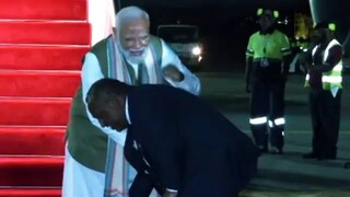 പ്രധാനമന്ത്രി നരേന്ദ്രമോദിയുടെ കാലു തൊട്ട് വന്ദിച്ച് പാപ്പുവ ന്യൂഗിനിയ പ്രധാനമന്ത്രി ജെയിംസ് മറാപെ; ഗംഭീര സ്വീകരണം