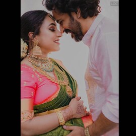 'ഞങ്ങള് വീണ്ടും വിവാഹിതരായി' എന്ന് തമാശരൂപേണ കുറിച്ചാണ് പേളി ശ്രീനിഷിനൊപ്പമുള്ള ചിത്രങ്ങള് ഇന്സ്റ്റഗ്രാമിലൂടെ പങ്കുവച്ചത്. സെലിബ്രിറ്റി മേക്കപ്പ് ആർട്ടിസ്റ്റായ രഞ്ജു രഞ്ജിമാറാണ് പേളിയെ ഒരുക്കിയത്.
