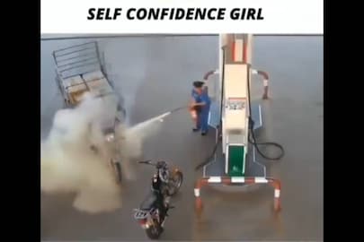 പെട്രോൾ പമ്പിൽ ബൈക്കിന് തീപിടിച്ചു; പുരുഷൻമാർ ജീവനും കൊണ്ട് ഓടിയപ്പോൾ തീയണച്ചത് വനിതാ ജീവനക്കാരി