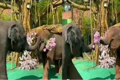 ഇന്സ്റ്റഗ്രാമില് വൈറലായ വീഡിയോയില് കാണുന്നത് - ഒരു കൊമ്പനാന തന്റെ തുമ്പിക്കൈയില് ഒരു കുല പൂവുമായി മുന്നോട്ട് നടക്കുന്നതാണ്. മനുഷ്യരുടെ വിവാഹ വേദി പോലെ പൂക്കളാലും മറ്റും അലങ്കരിച്ച ഒരു മരച്ചുവട്ടില് ഒരു പിടിയാന നില്ക്കുന്നുണ്ട്. തുമ്പിക്കൈയില് പിടിച്ചിരിക്കുന്ന ഒരു കെട്ട് പിങ്ക് പൂക്കുലകള് കൊമ്പനാന, ആ പിടിയാനയ്ക്ക് നേരെ നീട്ടുന്നു. കൗതുകകരമെന്നു പറയട്ടെ, ആ പിടിയാന ആ പൂക്കള് വളരെ സ്നേഹത്തോടെ സ്വീകരിക്കുന്നു. ഇടയ്ക്ക് കൊമ്പനാന, മുന് കാലുകള് വളച്ച് മുട്ടുകുത്തുന്നപോലെയും കാണുന്നുണ്ട്. തന്റെ കാമുകിയോട് വിവാഹാഭ്യര്ത്ഥന നടത്താന് കൈയില് പൂക്കളുമായി മുട്ടുകുത്തി നില്ക്കുന്ന കാമുകനെ അനുസ്മരിപ്പിക്കുന്ന ഒരു രംഗമാണ് ഇത് കാണുമ്പോള് മനസ്സിൽ തോന്നുക.
