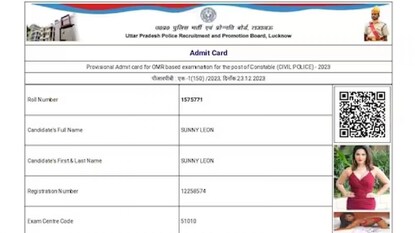 Summary: An admit card in the name of Bollywood actor Sunny Leone for Uttar Pradesh police examinations is doing the rounds on social media. The admit card is from an examination held on February 17