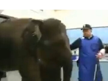 ലാബിലേക്ക് എക്സ്-റേ എടുക്കാന് നടന്നു വരുന്ന ആന എക്സ്-റേ എടുക്കുന്നതിനായി നിലത്തുകിടക്കുന്ന വീഡിയോ വൈറലായി