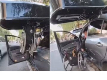വീൽചെയർ അറ്റാച്ച് ചെയ്തിരിക്കുന്ന കാറാണ് വീഡിയോയിൽ കാണുന്നത്