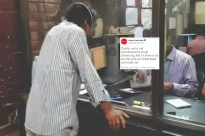 വ്യത്യസ്ത ഉപഭോക്താക്കൾക്കായി ഗ്ലാസ് ഷീൽഡ് ഉപയോഗിച്ച് വേർതിരിച്ച കൗണ്ടറിലേക്ക് ഗ്ലാസ് ഷീൽഡിനുള്ളിലെ ചെറിയ ദ്വാരത്തിലൂടെ നിയമം തെറ്റിച്ച് തലയിടുന്ന ഒരു യുവാവിന്റെ ചിത്രമാണ് അദ്ദേഹം ട്വിറ്ററിൽ പങ്കുവെച്ചിരിക്കുന്നത്. എതിർ വശത്തേക്ക് തലയിട്ടു നിൽക്കുന്ന അദ്ദേഹം മാസ്ക് ധരിച്ചിട്ടില്ല എന്നതും ശ്രദ്ധേയമാണ്. ഒരു സർക്കാർ ഓഫീസിൽ നിന്ന് പകർത്തിയതാണ് എന്ന് തോന്നിക്കുന്ന ചിത്രത്തിൽ ഓഫീസ് ജീവനക്കാരെയും കാണാം.