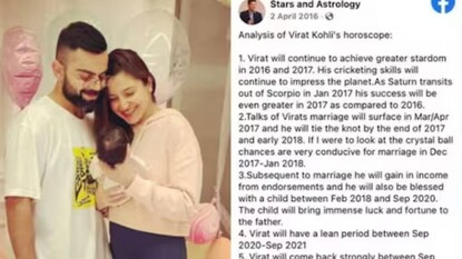 വിരാട് കോഹ്ലിയുടെ രണ്ടാമത്തെ കുട്ടിയെ കുറിച്ചുള്ള ജ്യോൽസ്യന്റെ പ്രവചനം ആരാധകരെ ഞെട്ടിക്കുന്നു; 2016ലെ ഫേസ്ബുക്ക് പോസ്റ്റ് വൈറൽ