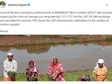 ത്രെഡ്സില് മുഖ്യമന്ത്രി പിണറായി വിജയന്റെ ആദ്യ പോസ്റ്റ്; തൊഴിലുറപ്പ് പദ്ധതിയുടെ നേട്ടം പങ്കുവച്ചു