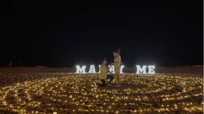 കാമുകനണിയിച്ച മോതിരം വിരലിൽ നിന്നൂർന്ന് മണലിൽ വീണു; കമിതാക്കൾ കടൽത്തീരത്ത് മോതിരം തിരയുന്ന വീഡിയോ വൈറല്