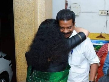 മുൻ മന്ത്രി കെ. രാധാകൃഷ്ണനെ ആശ്ലേഷിച്ച് ഡോ. ദിവ്യ എസ് അയ്യർ; ചിത്രം വൈറലായി