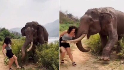 വാഴപ്പഴം കാട്ടി ആനയെ വിളിച്ചുവരുത്തി; യുവതിയെ തട്ടിയെറിഞ്ഞ് കൊമ്പൻ