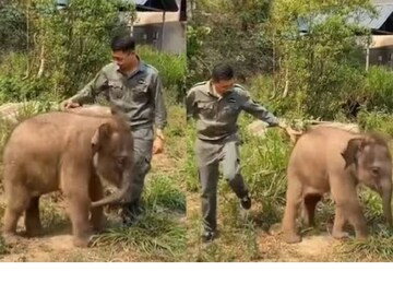 ആനക്കുട്ടിയോടൊപ്പം കളിച്ചാൽ എന്തു സംഭവിക്കും? കുട്ടിയാനയുടെ വീഡിയോ വൈറല്