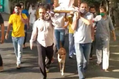 ജൈന സന്യാസിയുടെ അന്ത്യയാത്രക്കൊപ്പം അഞ്ച് കിലോമീറ്ററോളം സഞ്ചരിച്ച് നായ, അപൂർവ കാഴ്ച്ച ഗുജറാത്തിൽ നിന്ന്