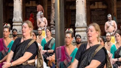 തമിഴ്നാട്ടിലെ നടരാജ ക്ഷേത്രത്തിൽ നടന്ന ഹോമത്തിൽ പട്ടു സാരിയുടുത്ത് വിദേശ വനിതകൾ