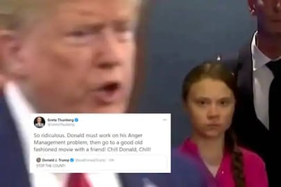 "എന്തൊരു പരിഹാസ്യം, ദേഷ്യം നിയന്ത്രിക്കാൻ പഠിക്കൂ, എന്നിട്ട് സുഹൃത്തിനൊപ്പം പോയി സിനിമയൊക്കെ കാണൂ. ചിൽ ഗ്രേറ്റ, ചിൽ! " എന്നായിരുന്നു ട്രംപിന്റെ ട്വീറ്റ്.