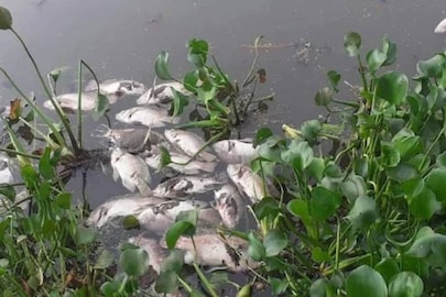 Karnataka: Dead fish seen floating in Mottanalluru lake in Anekal of Bengaluru, due to inflow of effluents and pesticides from surrounding industries and agricultural fields. pic.twitter.com/Bx3tmmBUA1