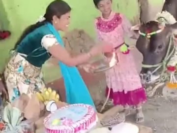 അതിന് ശേഷം തന്റെ സ്വന്തം മകളെ പോലെ പശുവിനെ പരിചരിച്ചത് സകര്ണതു ആയിരുന്നു. ബേബി ഷവര് ദിവസം സകര്ണതു പശുവിനെ പച്ച സാരിയുടുപ്പിച്ചിരുന്നു. വലിയ രീതിയിലുള്ള ആഘോഷങ്ങളാണ് ബേബി ഷവറിന്റെ ഭാഗമായി സകര്ണതു നടത്തിയത്. പൂക്കളും മറ്റും കൊണ്ട് സകര്ണതു വീട് അലങ്കരിച്ചു. ശേഷം പഴങ്ങളും മറ്റും ദേവിയ്ക്ക് കഴിക്കാനായി ഒരുക്കി.