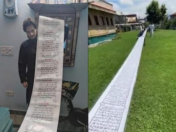 500 മീറ്റര് പേപ്പറില് (500 meter paper) വിശുദ്ധ ഖുറാന് (holy quran) കൈകൊണ്ട് എഴുതി ലോക റെക്കോര്ഡ് സൃഷ്ടിച്ച് 27കാരന്. മുസ്തഫ-ഇബ്ന്-ജമീല് എന്ന കശ്മീരി കാലിഗ്രാഫറാണ് (kashmiri calligraphar) റെക്കോര്ഡ് സ്വന്തമാക്കിയത്. ഏഴ് മാസം കൊണ്ടാണ് മുസ്തഫ ഖുറാൻ എഴുതി തീർത്തത്. ഗുരേസ് താഴ്വരയിലെ ബന്ദിപോര സ്വദേശിയാണ് മുസ്തഫ.