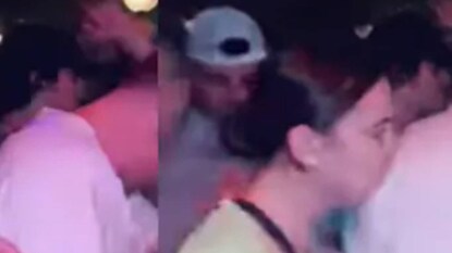 തിരക്കേറിയ ബാറിൽ വെള്ള ഷർട്ട് ധരിച്ച പുരുഷന്മാരുടെ പുറംഭാഗത്ത് യുവതി ചുംബിക്കുന്ന ദൃശ്യമാണ് പുറത്തുവന്നത്