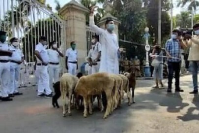 'ആടുകൾക്ക് ലോക്ഡൗൺ ബാധകമല്ലല്ലോ'; ബംഗാൾ ഗവർണറുടെ വസതിക്ക് മുന്നിൽ വേറിട്ട പ്രതിഷേധവുമായി യുവാവ്