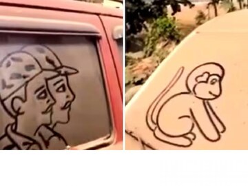അരുതേ ഇനി ഈ കാർ കഴുകരുതേ; പൊടിപിടിച്ച കാറിന്റെ ഗ്ലാസ് ക്യാൻവാസാക്കിയ യുവാവിനോട് സോഷ്യൽ മീഡിയ