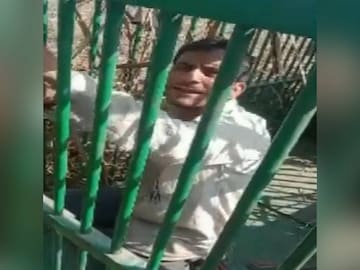 #WATCH | Uttar Pradesh: A man got stuck in a cage, installed to nab a leopard, in Basendua village of Bulandshahr dist. Forest Dept says that the man had entered the cage to get a rooster that was kept there as bait for the leopard.