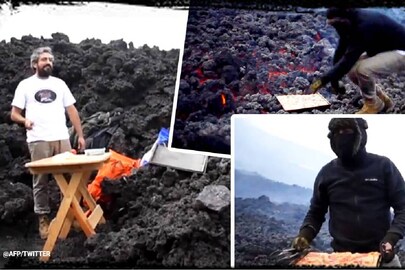 തീ തുപ്പുന്ന അഗ്നിപർവ്വതത്തിൽ വച്ചുണ്ടാക്കിയ ഒന്നാന്തരം പിസ; അഗ്നിപർവ്വതത്തെ അടുക്കളയാക്കി മാറ്റിയ യുവാവിന്റെ വീഡിയോ വൈറൽ