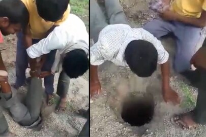 ഇടുങ്ങിയ കുഴിയിൽ വീണ ആടിനെ രക്ഷിക്കാൻ തലകീഴെ കുഴിയിലേക്കിറങ്ങിയ യുവാവ്. യുവാവിന്റെ കാല് പിടിച്ച് തലകീഴായി ഇറക്കിയത് സുഹൃത്തുക്കളും. സോഷ്യൽമീഡിയയിൽ വൈറലായിക്കൊണ്ടിരിക്കുന്ന വീഡിയോയുള്ള ഉള്ളടക്കമാണിത്.