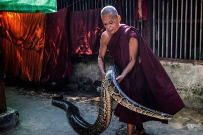 അണലി മുതൽ പെരുമ്പാമ്പ് വരെ അന്തേവാസികൾ; പാമ്പുകൾക്ക് അഭയകേന്ദ്രമൊരുക്കി ബുദ്ധ സന്യാസി