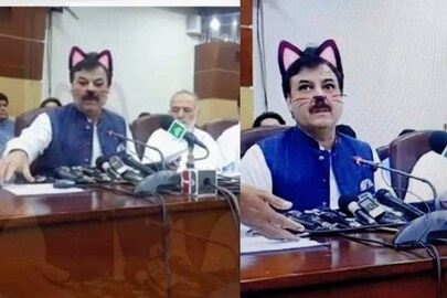 You can't beat this! Khyber Pakhtunkhwa govt's live presser on Facebook with cat filters.. 😹 pic.twitter.com/xPRBC2CH6y