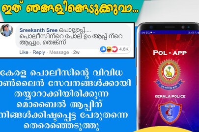 TRENDING:'പൊല്ലാപ്പ്': പൊലീസിന്റെ പോല്ഉം ആപ്പ്ന്റെ ആപ്പും: എന്താ പൊലീസ് മാമന് ഈ പേര് ഇഷ്ടപ്പെട്ടില്ലേ?