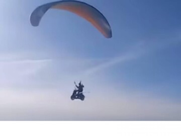 ഇലക്ട്രിക് സ്കൂട്ടറിൽ യുവാവിന്റെ പാരാഗ്ളൈഡിങ്; വായുവിൽ ട്രിക്കുകളും സ്റ്റണ്ടുകളും; വീഡിയോ വൈറൽ