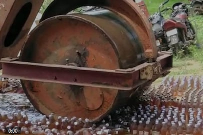 Viral Video | മദ്യപാനികളുടെ കരൾ പിളരും കാഴ്ച: 72 ലക്ഷം രൂപയുടെ മദ്യക്കുപ്പികളുടെ മുകളിലൂടെ റോഡ് റോളർ കയറ്റി പൊലീസ്
