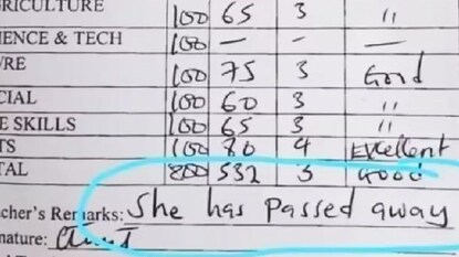 'ഷീ ഹാസ് പാസ്ഡ് എവേ'; മാർക്ക് ലിസ്റ്റിൽ ടീച്ചർ എഴുതിയത് കുട്ടി ജയിച്ചെന്നോ മരിച്ചെന്നോ?