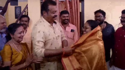വീട്ടില് അതിക്രമിച്ചു കയറി ആക്രമിക്കാന് ശ്രമിച്ചയാളെ സധൈര്യം നേരിട്ട വിദ്യാര്ഥിനിയെ നേരിട്ടെത്തി അഭിനന്ദിച്ച് നടനും മുന് രാജ്യസഭാംഗവുമായ സുരേഷ് ഗോപി. തൃപ്പൂണിത്തുറയിലെ പ്ലസ് ടു വിദ്യാര്ഥിയും കരാട്ടെ ബ്ലാക്ക് ബെല്റ്റ് ജേതാവുമായ അനഘ അരുണിനെയാണ് അദ്ദേഹം അഭിനന്ദിച്ചത്. അനഘയുടെ തൃപ്പൂണിത്തുറയിലെ വീട്ടിലെത്തിയ താരം പൊന്നടയണിയിച്ച് പെണ്കുട്ടിയെ ആദരിച്ചു. സ്വയം പ്രതിരോധത്തിന് പെണ്കുട്ടികള് പ്രാപ്തരാകണമെന്നും പ്രതികൂല സാഹചര്യത്തിലും വീറോടെ ആക്രമിയെ നേരിട്ട അനഘ മാതൃകയാണെന്നും അദ്ദേഹം പറഞ്ഞു.