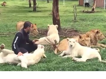 അദ്ദേഹത്തിന് ചുറ്റുമായി ഏതാനും സിംഹങ്ങളും കടുവകളുമൊക്കെ ശാന്തരായി നടക്കുന്നതും കിടക്കുന്നതുമൊക്കെ കാണാം. ഏതാനും സമയം അങ്ങനെ ശാന്തമായി തന്നെ കാര്യങ്ങൾ തുടരുന്നു. പെട്ടന്നാണ് പുറകിൽ നിന്നും ഒരു പുള്ളിപ്പുലി അദ്ദേഹത്തെ ആക്രമിക്കാനായി ഓടിയെത്തുന്നത്. തൊട്ടു പിന്നാലെ എത്തുന്ന ഒരു കടുവ പുള്ളിപ്പുലിയുടെ മുകളിലേക്ക് ചാടി കയറുകയും അതിന്റെ ആക്രമണത്തെ തടയുകയും ചെയ്യുന്നു. അപ്പോൾ മാത്രമാണ് ജീവനക്കാരൻ തന്റെ പിന്നിൽ പതിയിരുന്ന അപകടം തിരിച്ചറിഞ്ഞത്.