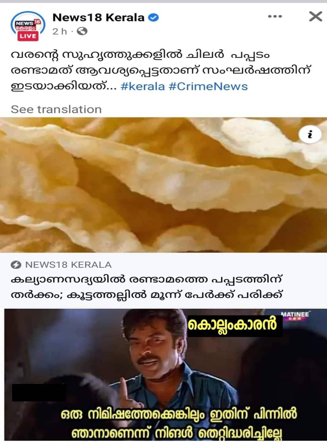 ആലപ്പുഴയിൽ പപ്പടത്തിന് വേണ്ടി നടന്ന കൂട്ടത്തല്ലിനെ 'പപ്പട ലഹള'യെന്നാണ് ട്രോളന്മാർ വിശേഷിപ്പിച്ചിരിക്കുന്നത്