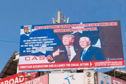 'പ്രസിഡന്റ് ഡൊണാൾഡ് ട്രംപും വൈസ് പ്രസിഡന്റ് മൈക്ക് പെൻസും ഇന്ത്യയെ ശക്തമായി പിന്തുണയ്ക്കുന്നവരാണ്' എന്ന തലക്കെട്ടോടെയാണ് ബോർഡ് സ്ഥാപിച്ചിരിക്കുന്നത്. 'ഭീകരവാദത്തിനെതിരായ നിങ്ങളുടെ നടപടികളിലൂടെ ലോകത്തിനാകെ നേട്ടമുണ്ടായി. അറബ് രാജ്യങ്ങളെയും ഇസ്രായേലിനെയും നിങ്ങൾ സുഹൃത്തുകളാക്കി. അമേരിക്കയെ വീണ്ടും മഹത്തരമാക്കുക. തകർപ്പൻ വിജയം ഞങ്ങൾ നേരുന്നു!'.- എന്നും ബോർഡിൽ കുറിച്ചിരിക്കുന്നു. സാമൂഹിക വിഷയങ്ങളിൽ ഇടപെട്ട് പ്രവർത്തിക്കുക എന്ന ലക്ഷ്യത്തോടെയാണ് വർഷങ്ങൾക്ക് മുൻപ് എല്ലാ ക്രിസ്ത്യൻ വിഭാഗങ്ങളിലെയും അംഗങ്ങളെ ഉൾപ്പെടുത്തി സിഎഎസ്എ എന്ന സംഘടന രൂപീകരിച്ചത്.