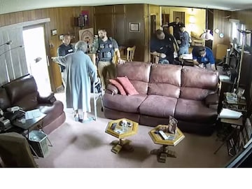 ഈ വീട്ടിലാണ് റെയ്ഡ് നടന്നത്. ഒരു വാക്കറിന്റെ സഹായത്തോടെയാണ് ജോന് നടക്കുന്നത്. ഇതും പിടിച്ച് നിന്നാണ് ഇവര് പോലീസിനെ പ്രതിരോധിച്ചത്. ” എന്റെ വീട്ടില് നിന്ന് ഇറങ്ങിപ്പോകൂ. നിങ്ങളെ എന്റെ വീട്ടില് കണ്ടുപോകരുത്. ഇവിടുത്തെ ഒരു സാധനങ്ങളും തൊട്ടുപോകരുത്. ഇത് എന്റെ വീടാണ്,” എന്നാണ് ജോന് പറഞ്ഞത്. ആഗസ്റ്റ് 11നാണ് എറിക് മേയര്, സിറ്റി കൗണ്സില് മെമ്പര് എന്നിവരുടെ വീടുകളില് റെയ്ഡ് നടന്നത്. പ്രദേശത്തെ ഒരു ഹോട്ടല് ഉടമയുടെ പരാതിയെത്തുടര്ന്നായിരുന്നു റെയ്ഡ്.