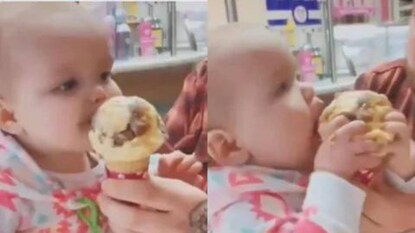 Summary: A video gone viral on Twitter shows a baby experiencing her first ice cream with wonder. The toddler was given an icecream and soon she is seeing grabbing all of it with her tiny hands, while at the same time bringing it closer to her mouth