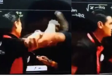 ക്ലാസ് എടുക്കുന്നതിനിടെ, അധ്യാപകന്റെ അടുത്തേക്ക് ഓടിയെത്തിയ വിദ്യാർത്ഥി അദ്ദേഹത്തെ ക്രൂരമായി ആക്രമിക്കുന്നതും ചെരിപ്പൂരി അടിക്കുന്നതും വീഡിയോയിൽ കാണാം.