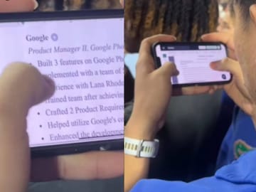 ഒരു ലൈവ് ഫുട്ബോള് മത്സരത്തിനിടെയാണ് ഈ വീഡിയോ പകര്ത്തിയിരിക്കുന്നത്. യുവാവ് മത്സരത്തില് മാത്രം ശ്രദ്ധിക്കുന്നതിന് പകരം തന്റെ ഫോണില് റെസ്യൂമെ തയാറാക്കുന്നതാണ് കാണുന്നത്. കിസ്മ എന്നയാളുടേതാണ് റെസ്യൂമെ എന്ന് വീഡിയോയില് കാണാന് സാധിക്കും. വീഡിയോ ദൃശ്യങ്ങളില് കിസ്മ നിരവധി വര്ഷങ്ങള് ഗൂഗിളില് ജോലി ചെയ്തിട്ടുണ്ടെന്ന് റെസ്യൂമെ വ്യക്തമാക്കുന്നു. മത്സരത്തിനിടെ റെസ്യൂമെ പരിശോധിച്ചതായി പറഞ്ഞ് ആ യുവാവ് കിസ്മയെ തമാശരൂപത്തില് അഭിനന്ദിക്കുന്നുണ്ട്.
