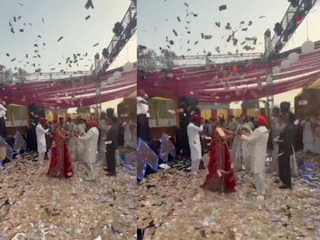Footage shows NRI guests from Australia and Canada emptying bags of cash over the couple standing on the wedding stage. Both Indian Rupees and US Dollars were used, completely carpeting the stage and floor in banknotes.